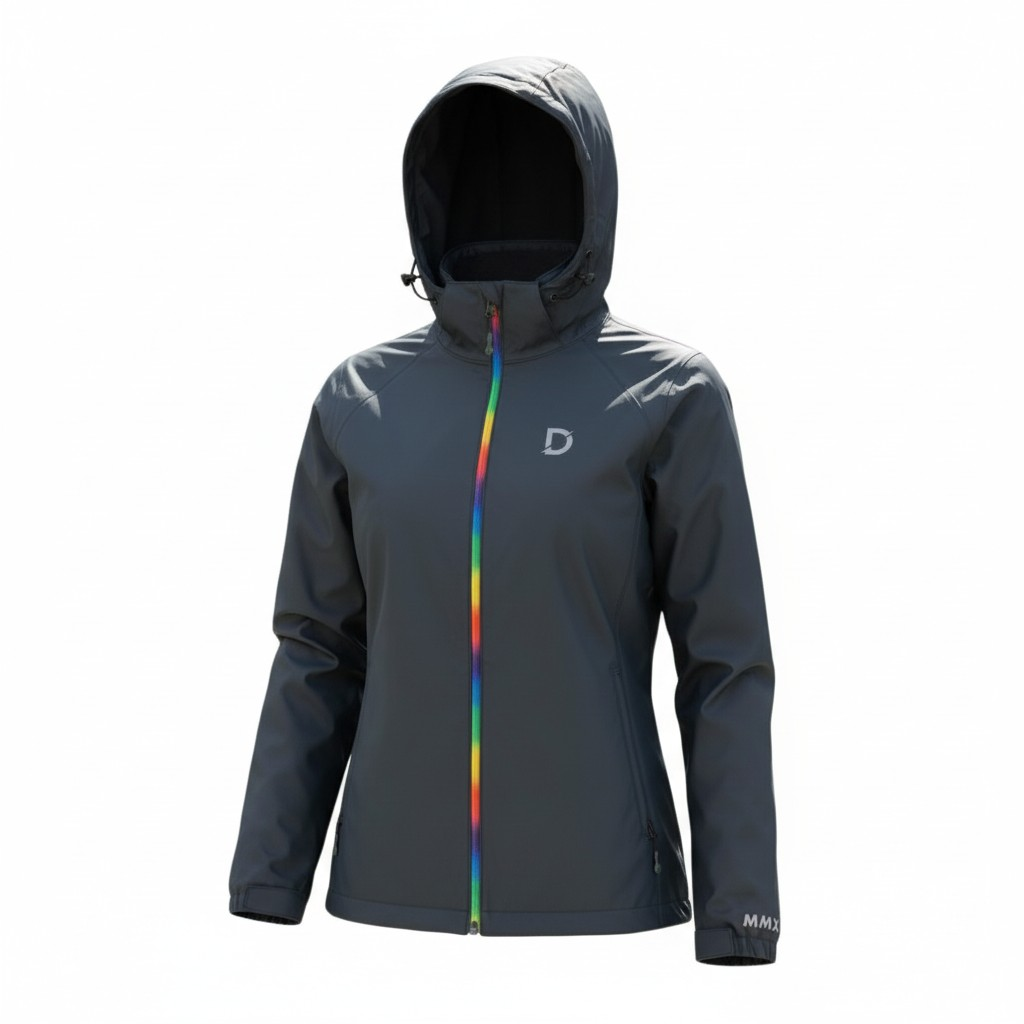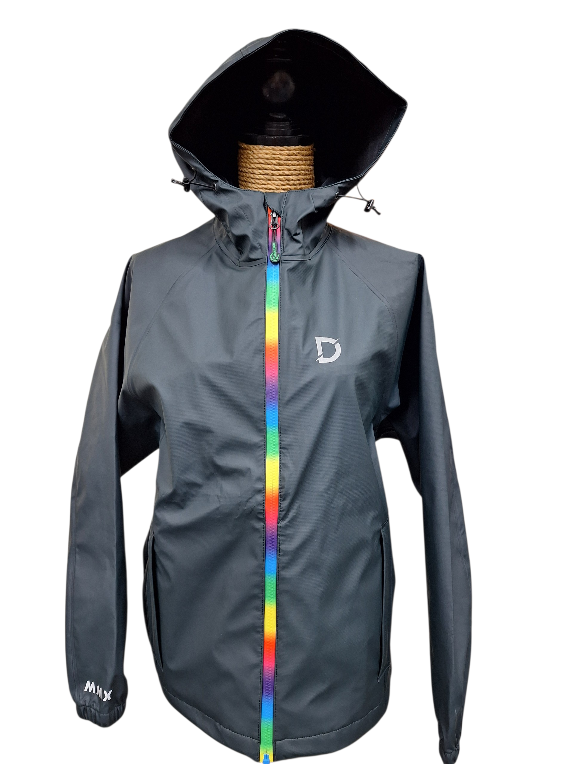 A beautiful black with a tint of olive waterproof coat, perfect for those unpredictable April showers. Designed to combine practicality with personality, this standout jacket features a vibrant rainbow zip that adds a bold pop of colour and fun to a classic outdoor essential.